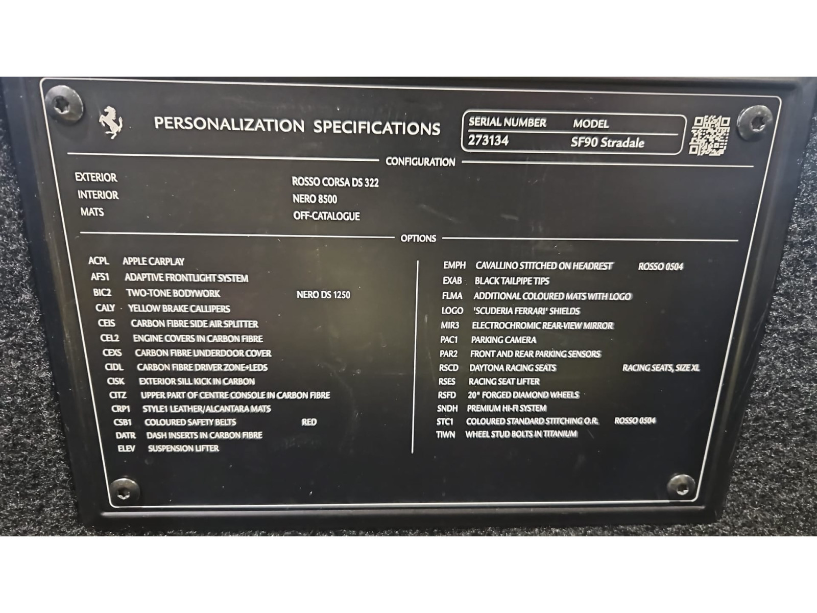 Ferrari SF90 Stradale DAYTONA RACING SEATS FULL ELECTRIC CARBON LIFT JBL